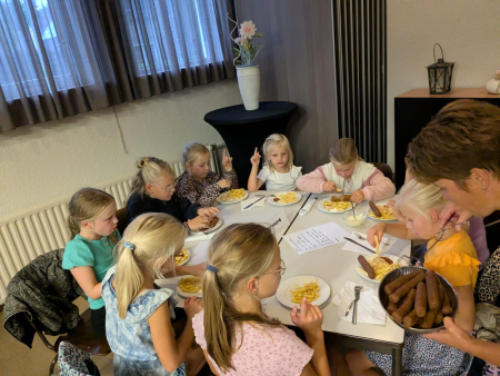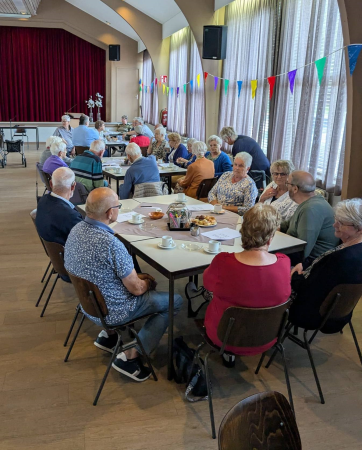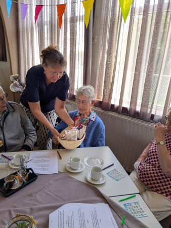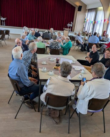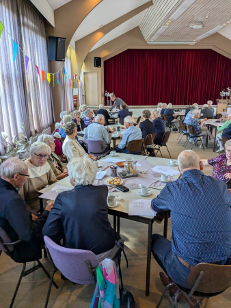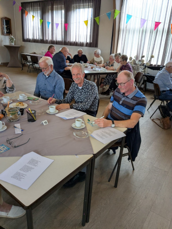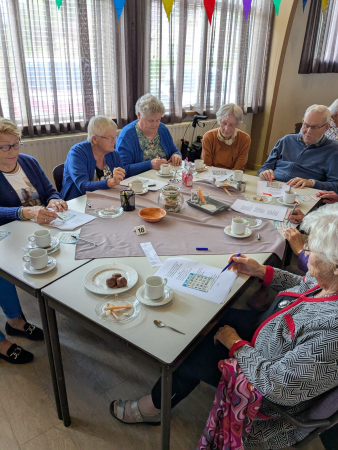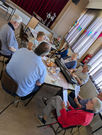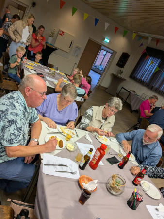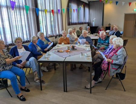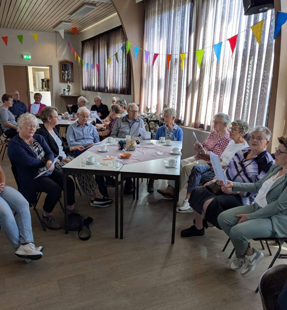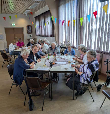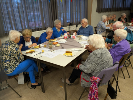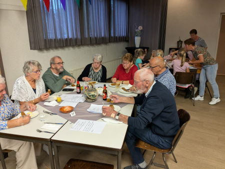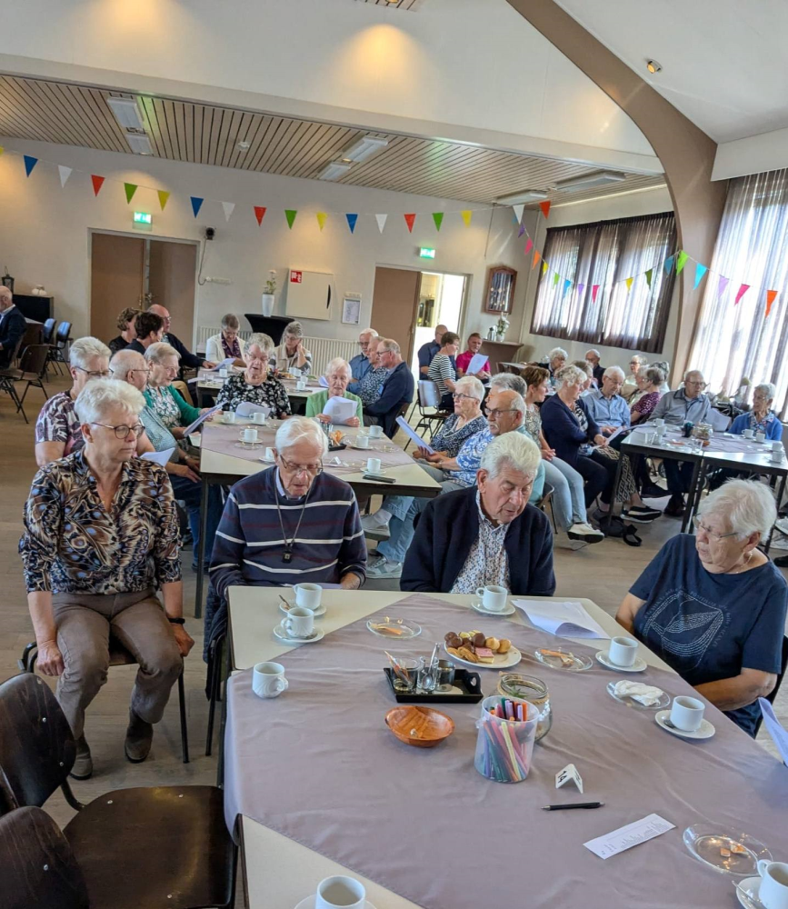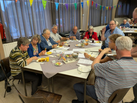 Ouderenmiddag met gezelligheid en bingo. Het werd muzikaal begeleid door het 'koortje' uit de Jabbingelaan. Afsluiting met patat samen met de kindernevendienst